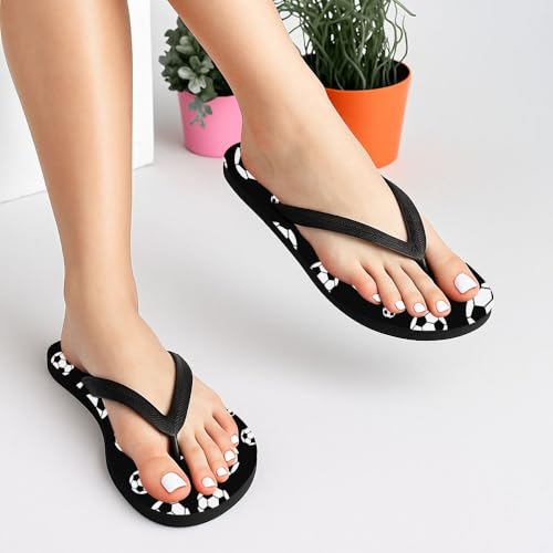 Flip Flops for Women Men Rubber Non Slip Yoga Mat Beach Funny Print Flat Thong Sandals Lightweight Comfy Casual Walking Pool Shower Shoes Indoor House Waterproof Slippers Two-Tone Footwear 6