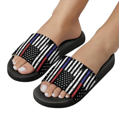 U.S. Thin Line Blue Flag Non Slip Slides Sandals for Women Men Quick Drying Shower Shoes for Bathroom Pool Beach 6
