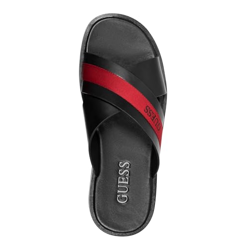 • Slip into these elevated Guess sandals this summer. They have a dressy undertone, but still an overall casual appeal. The cross band adds a slight secure feel. Est. 1981, Guess is a global lifestyle brand and a symbol of a young, adventurous lifestyle.