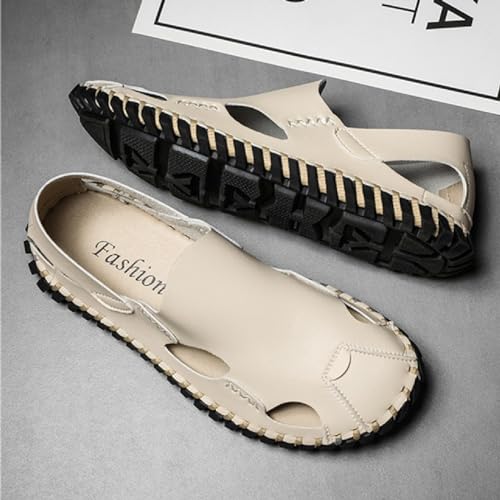 Men's Genuine Leather Cutout Fisherman Sandals Hand Stitched Fashion Comfortable Closed Toe Flat Beach Walking Shoes for Summer Outdoor Casual 6