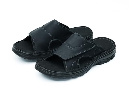 MGGMOKAY Mens Leather Slide Sandals Comfortable Anti-Slip Slides with Adjustable Straps 1