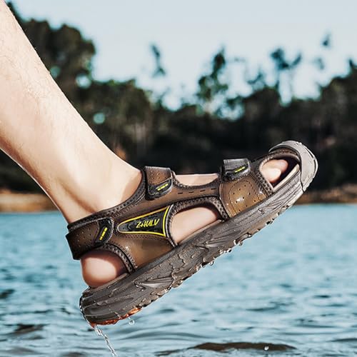 Fashion Men's Handmade Hiking Sandals, Large Size Real Leather Closed Toe Sandals, Outdoor Breathable Backpacking Beach Shoes 7