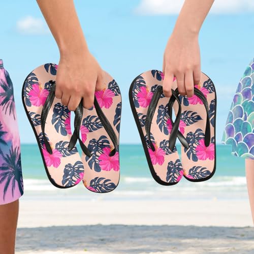 HOT ! Pink Hibiscus Leaves Flip Flops for Beach Thong Sandals Anti-slip Lightweight Beach Shoes for Summer Outdoor Travel