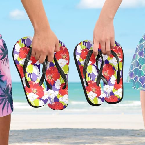 Sinestour Flower Red White Flip Flops for Beach Thong Sandals Anti-slip Lightweight Flat Slippers for House Indoor Outdoor 7