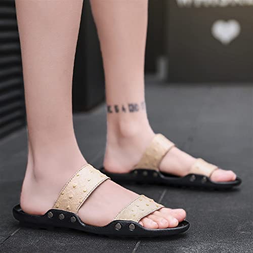 HOT ! Slide Sandals For Men Microfiber Leather Rivets Closure PU Leather Fixed Strap Non-slip Casual Slide Sandal