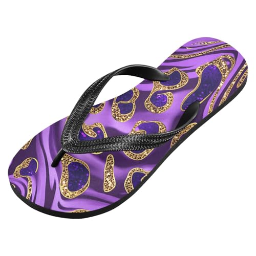 Purple Leopard Golden Wavy Stripes Flip Flop Beach Summer Casual Sandal for Women & Men Shower Shoes 20861913 5