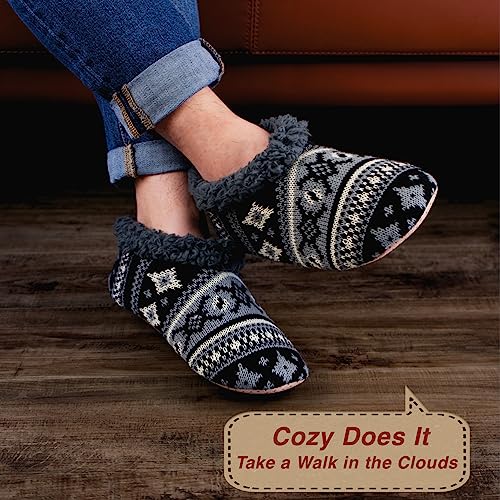 • Soft and Fuzzy: 2-pair pack slipper socks are made with Sherpa fleece lining that feels breathable and warm on your feet, making them perfect for cold winter weather. They work in warm climates too where air conditioning keeps floors cold.
