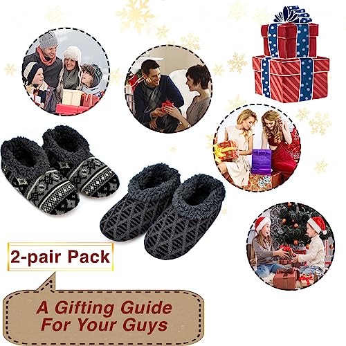 2-Pair Men's Slipper Socks Fluffy Sherpa Lined, Winter Cable Knit Warm Gripper Sock Set Non-Skid Soles, Cozy Gifts for Men, Sizes 8-15 2