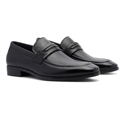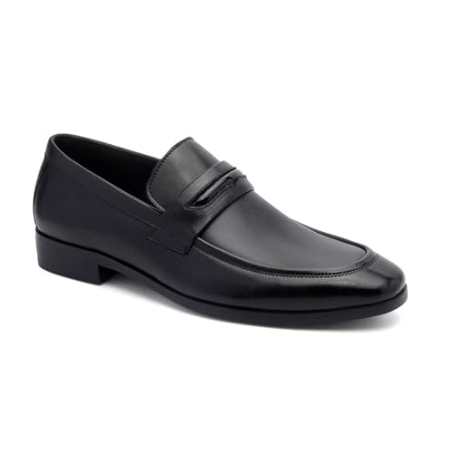 Men’s Leather Penny Loafers Classic Slip On Dress Shoes with Block Heel, Breathable Lining & Durable Rubber Sole 6