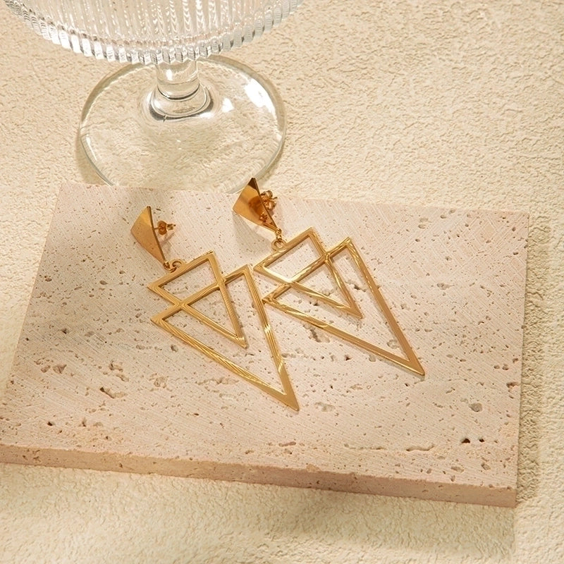 More information about 1 Pair Exaggerated Streetwear Triangle Plating 304 Stainless Steel 14K Gold Plated Drop Earrings