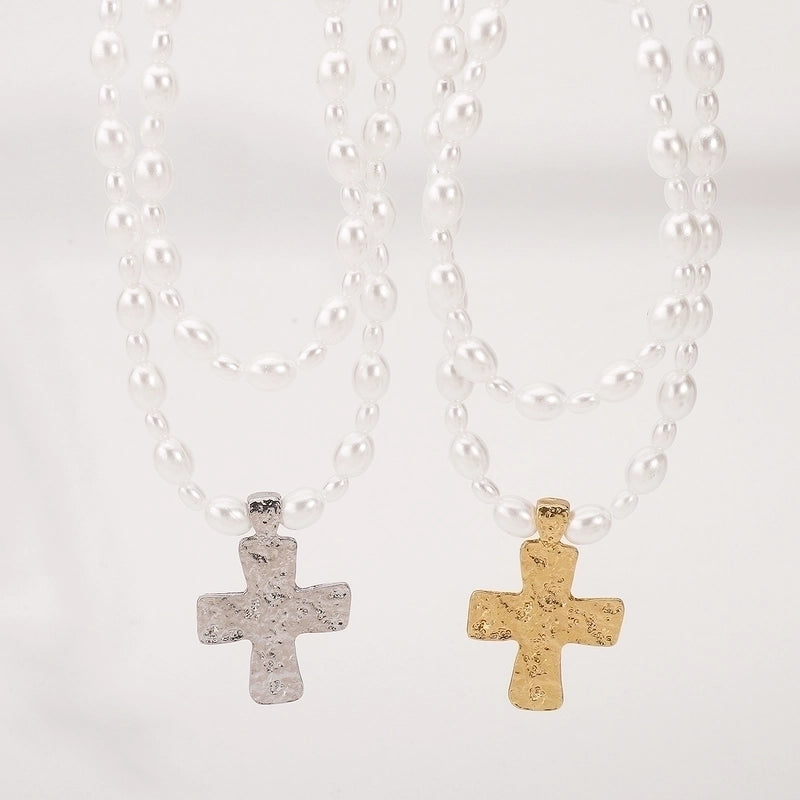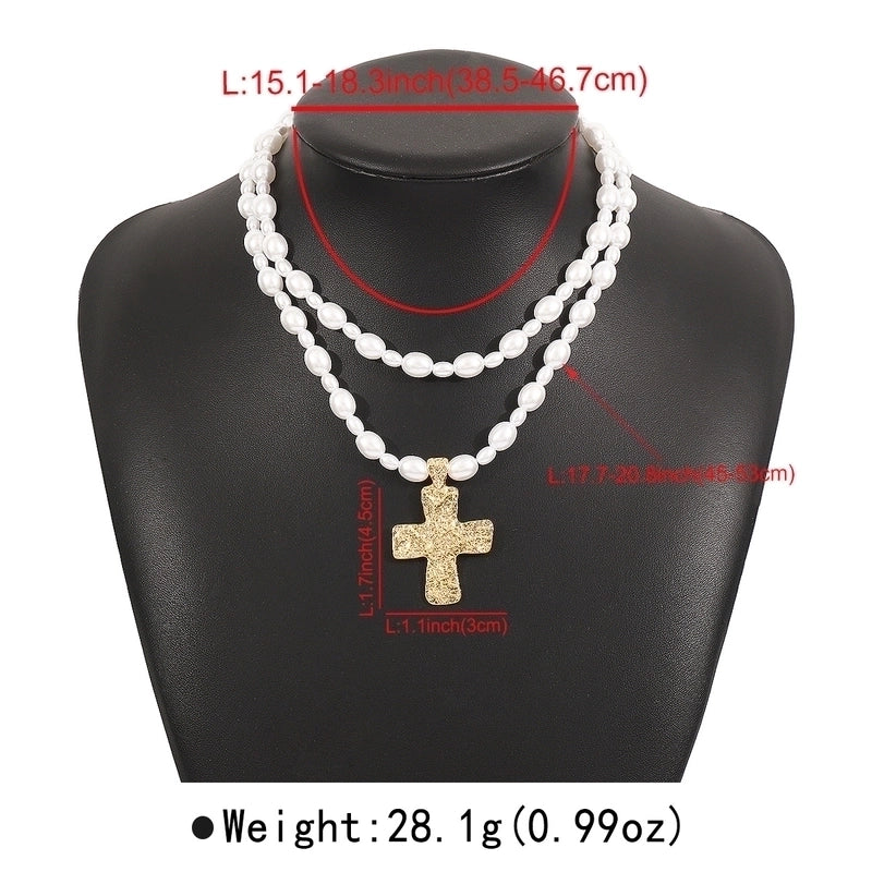 More information about Elegant Glam Streetwear Cross Imitation Pearl Alloy Double Layer Necklaces