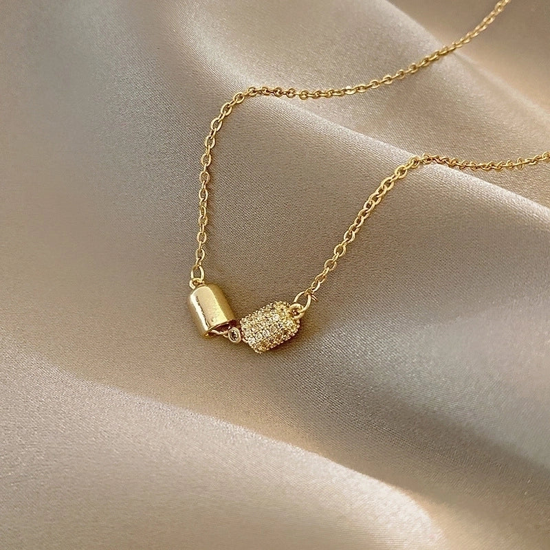 HOT ! Elegant Minimalist Geometric Titanium Steel Plating Inlay Artificial Pearls Shell Zircon Necklace