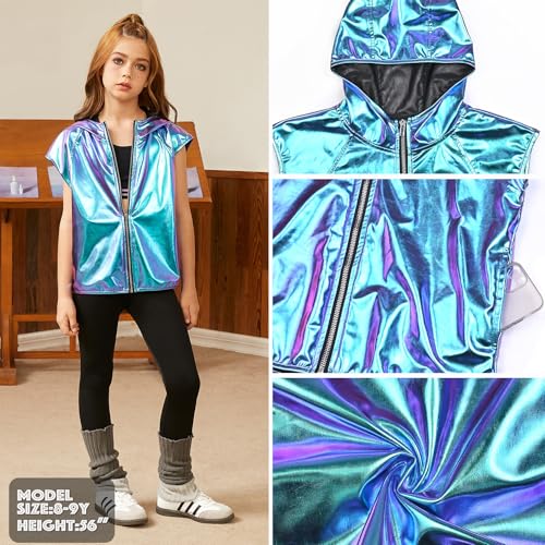 Jxstar Girls Metallic Hoodie Vest Kids Shiny Zip Up Outfit Sleeveless Disco Shirt with Pocket 5