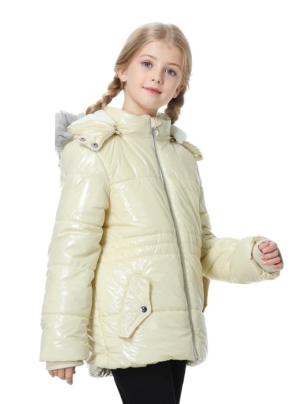 Girls Winter Coat Fleece Lined Jacket with Detachable Hood Warm Parka Comfy Puffer Outwear 6