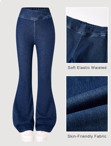 Girls Stretch Flare Jeans 8-12Y Crossover Waist Denim Pants Exercise Basics Slim Casual Streetwear 5