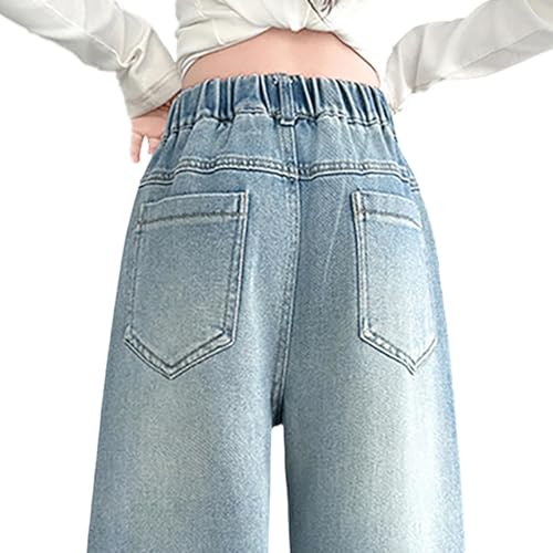 HOT ! Tween Girls Baggy Jeans, Casual Elastic Waistband Wide Leg Jeans with Butterfly Embroidered, Cute Pants for Girls