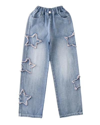 HBER Kids Girls Cute Star Jeans Elastic Waist Wide Leg Pull On Jeans Baggy Denim Pants for Teen Girls 5-14 Years 6