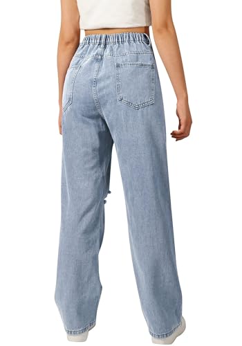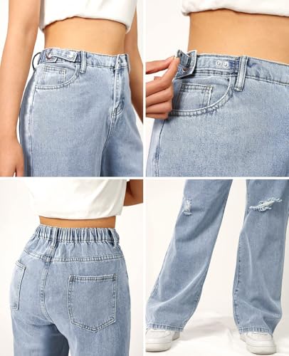 HOT ! SANGTREE Girls Wide Leg Jeans Elastic Waist Denim Pants Baggy Jeans for Girls,Blue-Ripped,13-14 Years = Tag 170