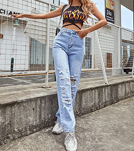Distressed Boyfriend Jeans for Women High Waist Straight Leg Loose Destroyed Ripped Denim Pants for Teen Girl Juniors 5