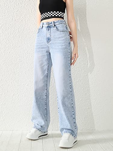 More information about SweatyRocks Girl's Casual High Waist Solid Denim Pants Stretchy Flare Leg Jeans with Pocket Light Blue 8-9Y