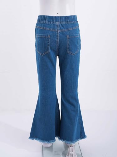 Girls Distressed Flared Jeans Elastic Waist Bell-Bottoms Trousers Washed Raw Edge Pants Leggings Street Wear 6