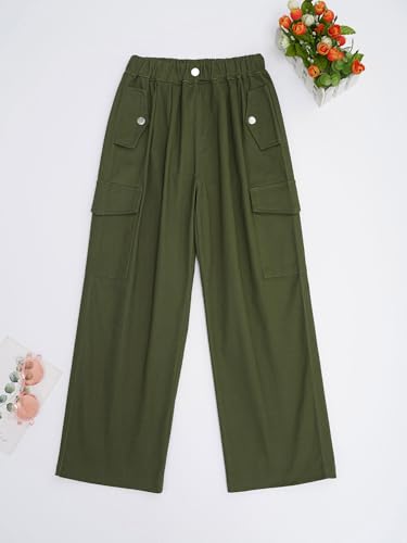Youth Girls Wide Leg Cargo Pants Baggy High Waist Straight Jeans Athletic Workout Joggers Trousers 6