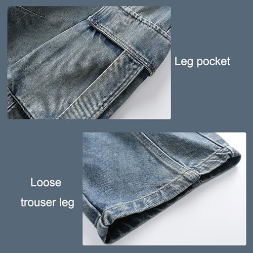 More information about Girls Cargo Jeans Baggy Wide Leg Streetwear Denim Pants Teen Kids Retro Loose Fit Jeans Multi Pockets High Waist Pants