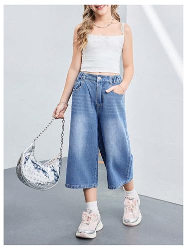 More information about WDIRARA Girl's Bow Embroidery Baggy Jeans Cute Wide Leg Capris Denim Pants