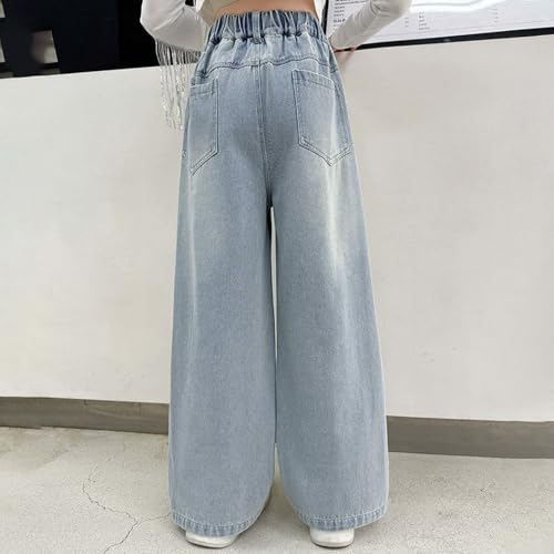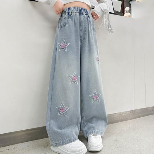Girls Star Print Baggy Jeans 𝐘2K Elastic High Waist Pants Youth Wide Leg Straight Loose Denim Trousers with Pokets 6