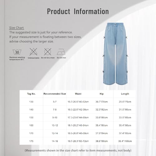 Hansber Girls Wide-Leg Denim Jeans Elastic Waistband Y2k Pants with Pockets School Casual Bowknots Pants 6