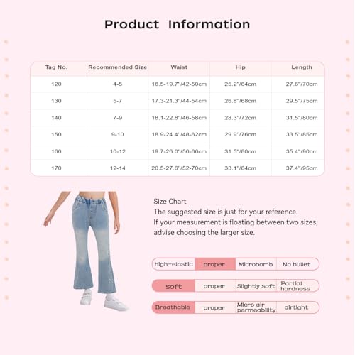 Kids Girls Denim Pants Skinny Bell Bottoms Slim Fit Flare Jeans with Pockets Streetwear 7