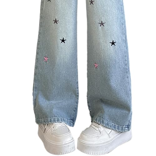 • Stylish Design: Featuring a loose design and an elastic waistband, these girls jeans offer easy wear for growing kids while the charming star embroidery adds a fashionable touch to any outfit.