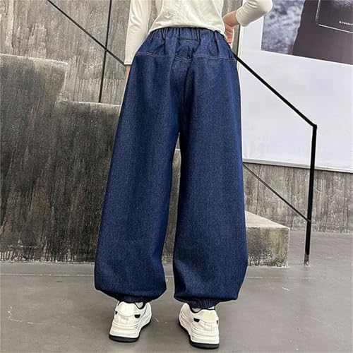 Girls Denim Harem Pants Kids Elastic Waist Pleated Wide Leg Baggy Jeans 2025 Trendy Teen Y2K Punk Streetwear Vintage Clothes 6