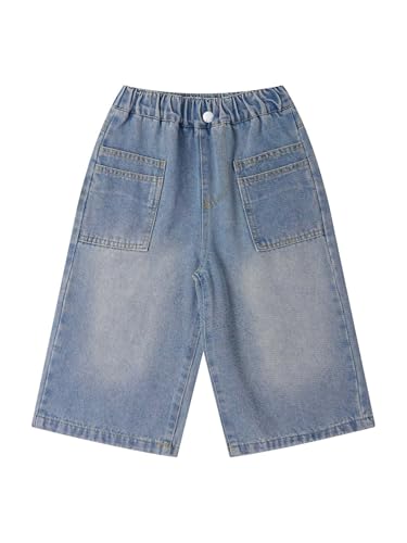 Aislor Kids Girls Jeans Wide Leg Denim Cropped Pants Loose Fit Denim Cropped Trousers Cowboy Bottoms with Pockets 6