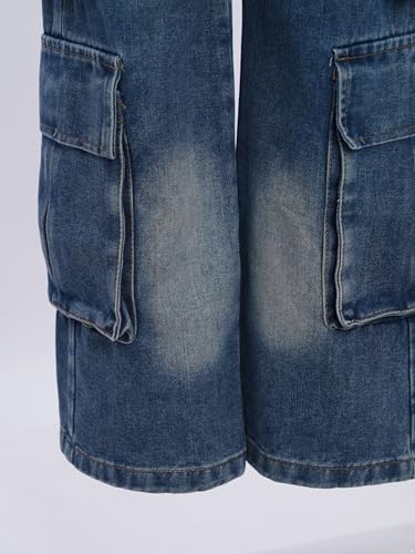 Kids Girls Cargo Denim Pants Elastic Waistband Comfort Fit with Flap Pockets for Hip-hop Skateboarding Toursers 6