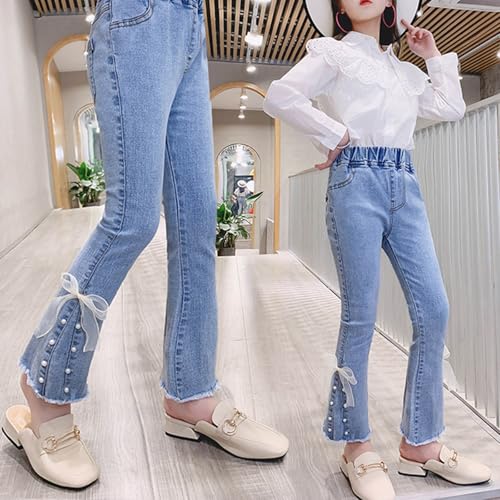 Teen Girls Flare Jeans Vintage Bell Bottom Jeans High Waisted Elastic Waist Denim Pants Lace Bow Bootcut Denim Pants 7