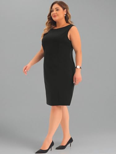 Agnes Orinda Plus Size Sheath Dress for Women Sleeveless Boat Neck Casual Straight Pencil Work Dresses 6