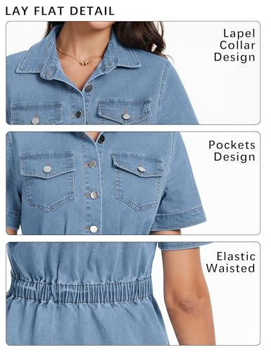 Denim Shirt Dress for Women Short Sleeve, Jean Stretch Button Down Dresses for Summer 5