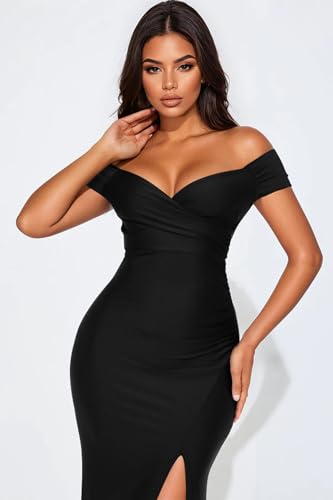 More information about Memoriesea Women's Sexy V Neck Sleeveless Off Shoulder High Split Cocktail Party Maxi Dress