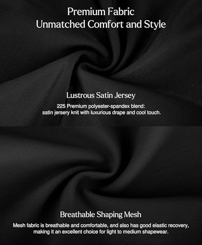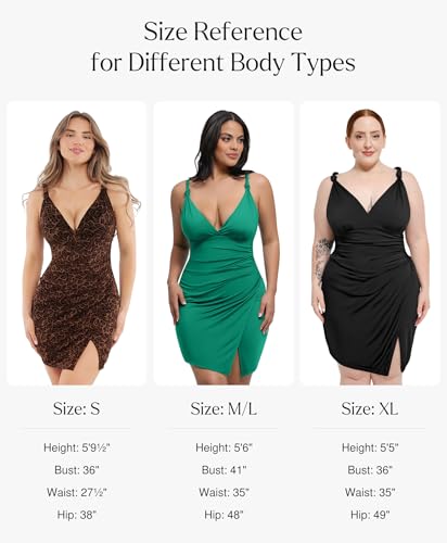 • 9 IN 1 DESIGN:Our dress features a built-in shaper for a close fit. The thong hip design shapes curves and reduces panty lines. Its breathable cotton crotch eliminates the need for extra underwear, while the double-layered abdomen smooths the tummy for a sleeker silhouette.