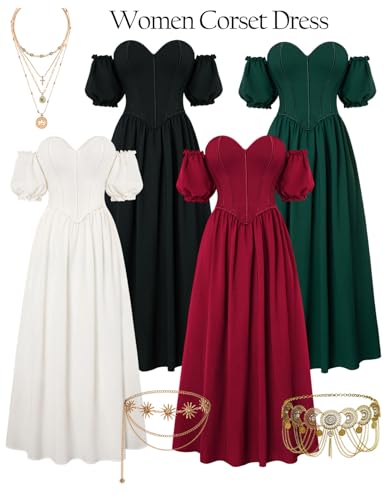 Scarlet Darkness Women Off Shoulder Corset Dress Sweetheart Fishboned Puff Sleeve Renaissance Dress 5
