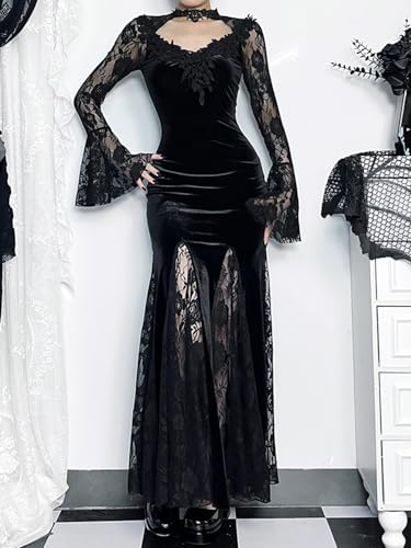 • Unique Gothic Design: Our gothic slim lace contract fishtail dress combines elegance and edginess with intricate lace detailing and a slim-fit silhouette