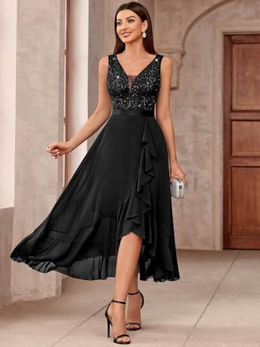• FEATURES: Mesh Deep V-Neck, Shining Sequined Floral Lace, Sleeveless, A Line, Zipper on the back, Under the Knees, Soft, Lightweight, and Breathable Fabric.
