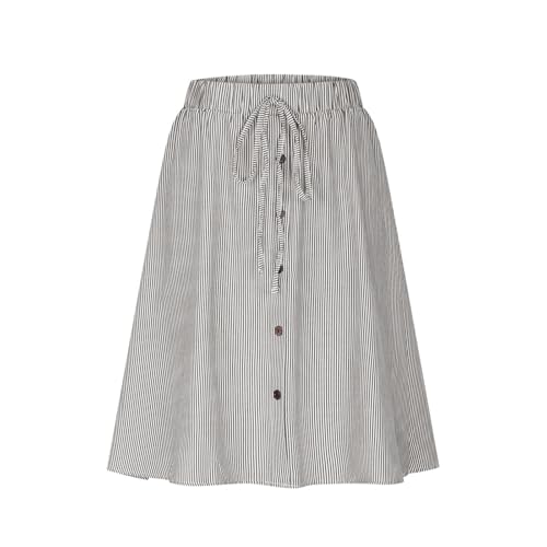 HOT ! Women's High Waist Drawstring Skirt, Fashion Ruffle Hem A-Line Midi Skirts Going Out Casual Clothes with Button