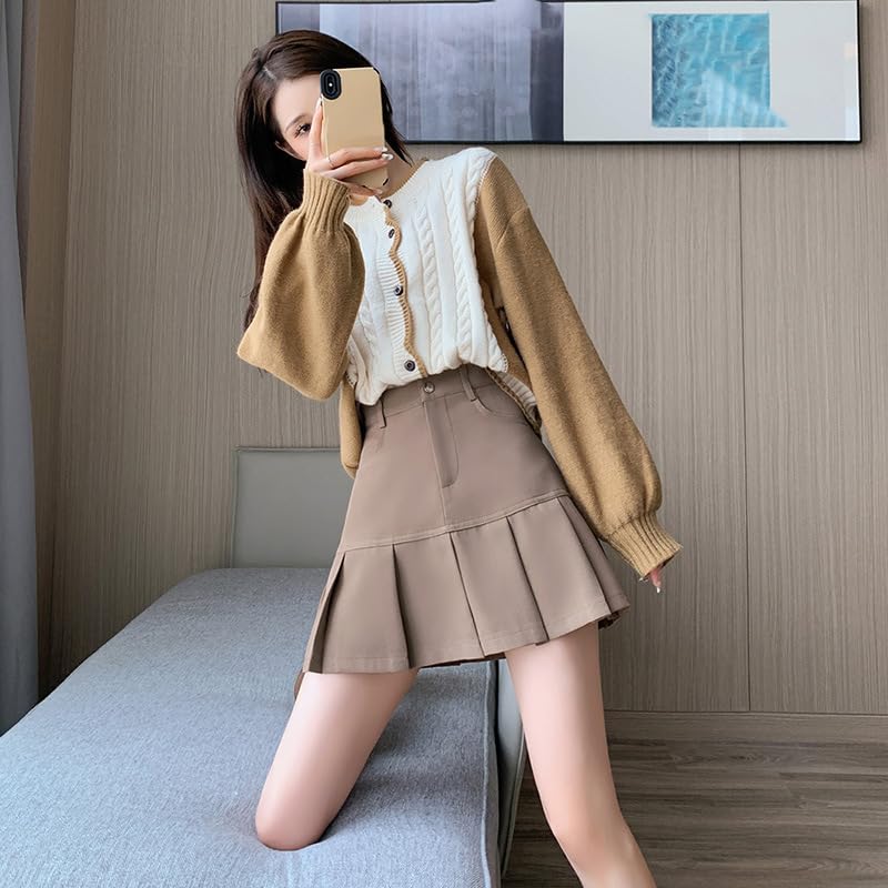 Women's High Waist Zipper A-Line Short Skirt - Autumn 6