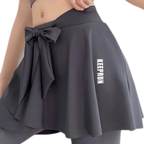 Women Layered Pleated Yoga Tennis Cover Up Skirt Athletic Workout Running Tie Up Wrap Skirt Hip Covering Irregular Scarf Grey 7