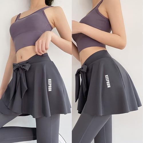 HOT ! Women Layered Pleated Yoga Tennis Cover Up Skirt Athletic Workout Running Tie Up Wrap Skirt Hip Covering Irregular Scarf Grey
