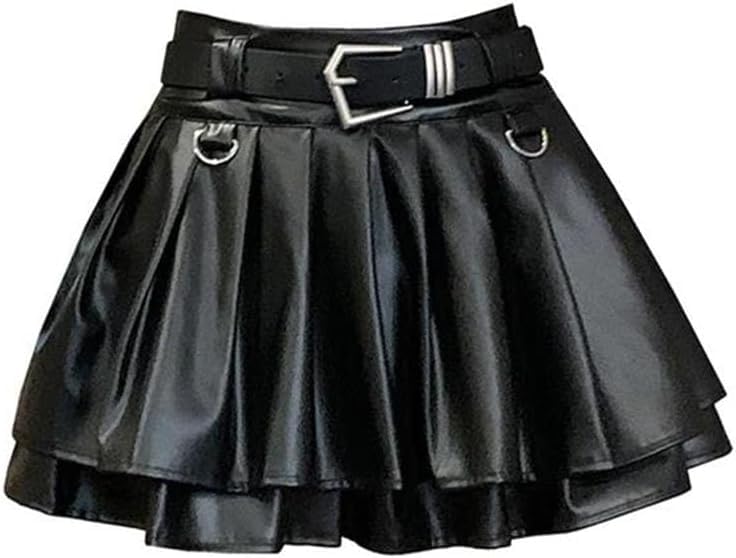 Women's A-Line Pleated Leather Mini Skirt Vintage Harajuku Gothic 6