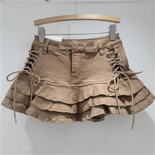 Women’S Denim Skirts with Solid Color Bandage Pleated Edge A-Line High Waist Slim Short Skirt 6