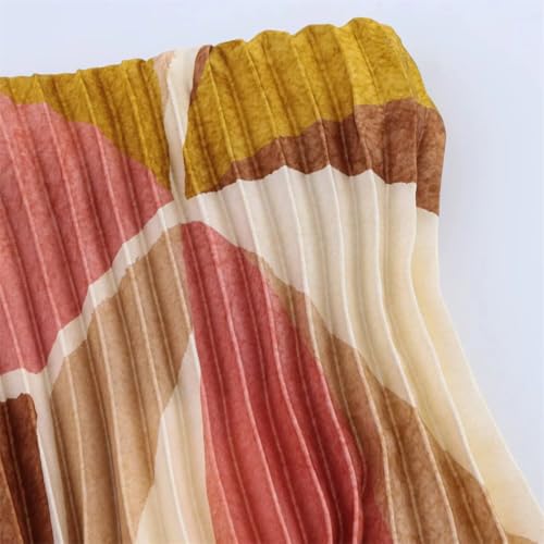 More information about Women Pattern Suit Backless Sleeveless Hanging Neck Collar Top+Waist Printed Pleated Midi Skirt